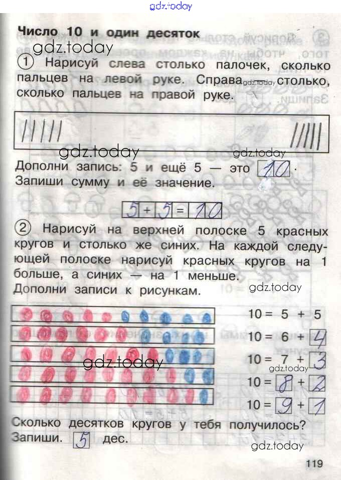 На страницах сайта gdz.today вы найдете учебный и вспомогательный материал, направленный на улучшения знаний школьной программы. ГДЗ - онлайн мир знаний Решение к тетради №1. Страницы 119 Тетради для самостоятельной работы по Математике для 1 класса Захарова, Юдина Академкнига Перспективная начальная школа 2016
