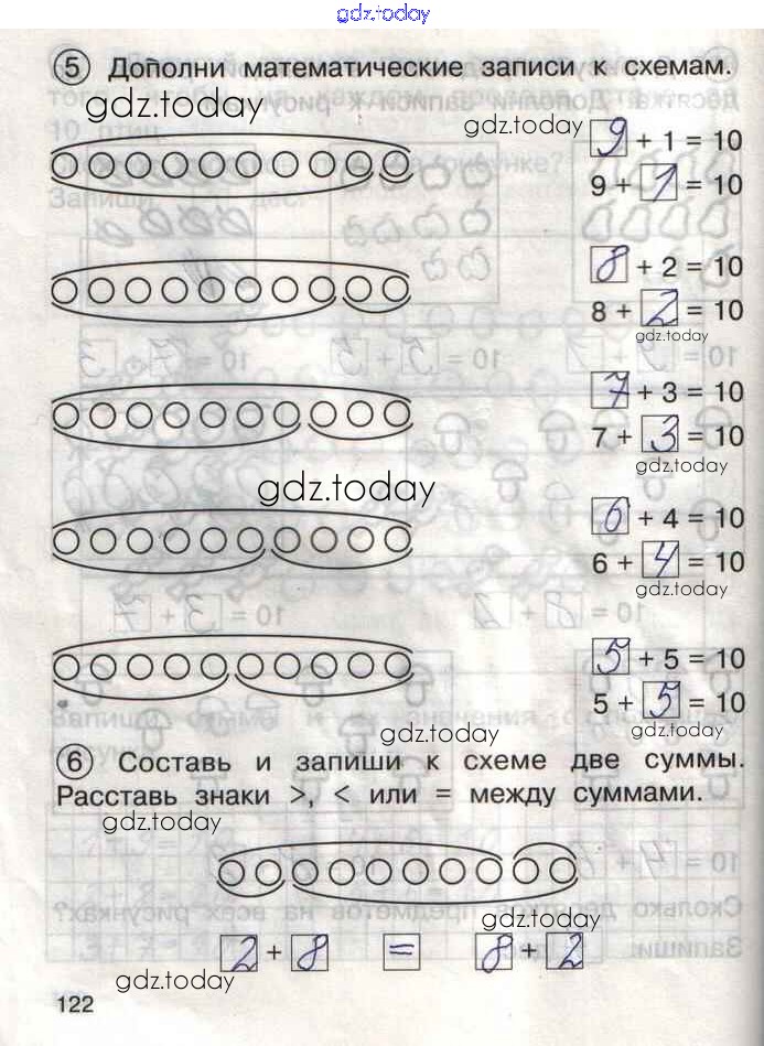 Ответы к Решение к тетради №1. Страницы 122 Тетради для самостоятельной работы по Математике для 1 класса Захарова, Юдина Академкнига Перспективная начальная школа 2016