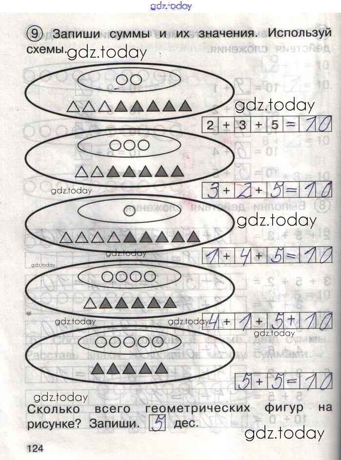 Ответы к Решение к тетради №1. Страницы 124 Тетради для самостоятельной работы по Математике для 1 класса Захарова, Юдина Академкнига Перспективная начальная школа 2016