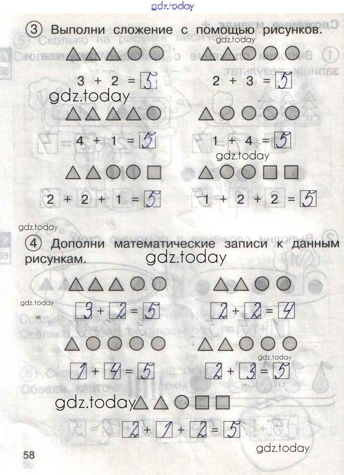 На страницах сайта gdz.today вы найдете учебный и вспомогательный материал, направленный на улучшения знаний школьной программы. ГДЗ - онлайн мир знаний Решение к тетради №1. Страницы 58 Тетради для самостоятельной работы по Математике для 1 класса Захарова, Юдина Академкнига Перспективная начальная школа 2016