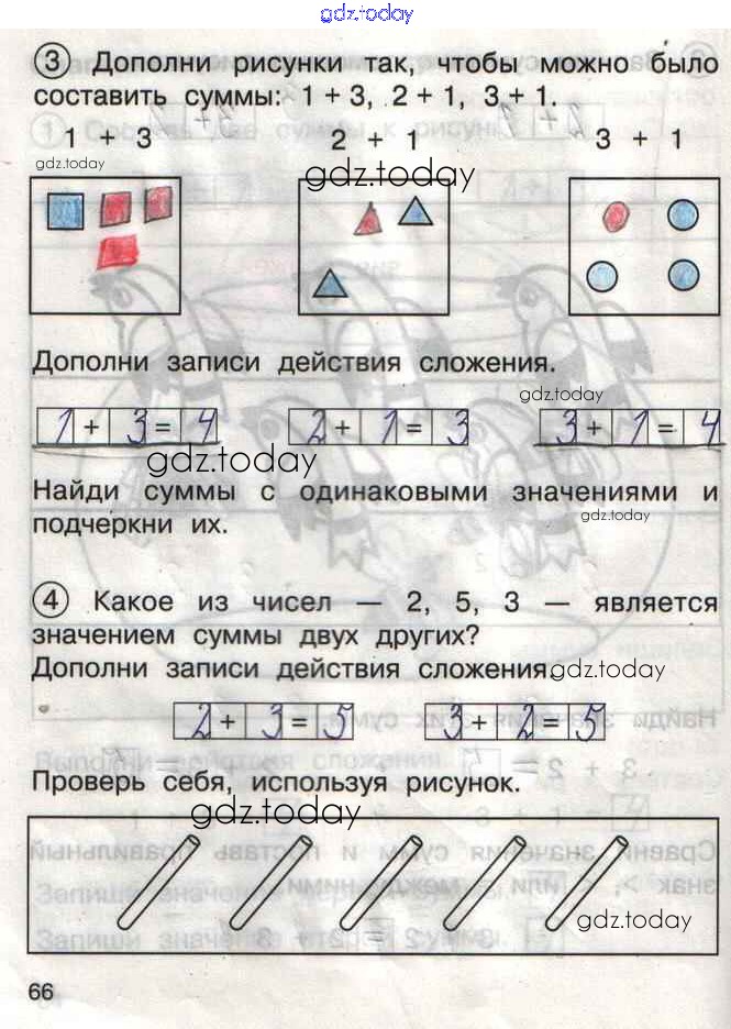 На страницах сайта gdz.today вы найдете учебный и вспомогательный материал, направленный на улучшения знаний школьной программы. ГДЗ - онлайн мир знаний Решение к тетради №1. Страницы 66 Тетради для самостоятельной работы по Математике для 1 класса Захарова, Юдина Академкнига Перспективная начальная школа 2016