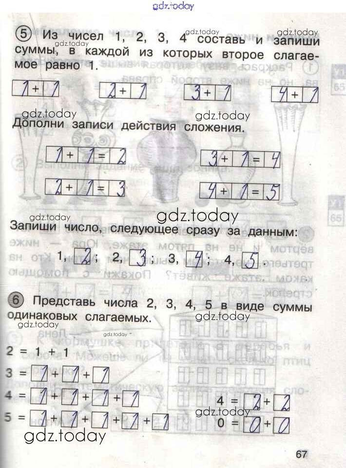 На страницах сайта gdz.today вы найдете учебный и вспомогательный материал, направленный на улучшения знаний школьной программы. ГДЗ - онлайн мир знаний Решение к тетради №1. Страницы 67 Тетради для самостоятельной работы по Математике для 1 класса Захарова, Юдина Академкнига Перспективная начальная школа 2016