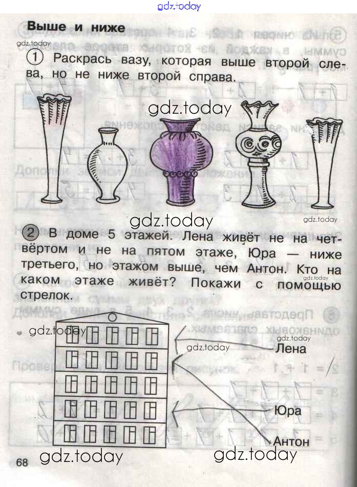 Ответы к Решение к тетради №1. Страницы 68 Тетради для самостоятельной работы по Математике для 1 класса Захарова, Юдина Академкнига Перспективная начальная школа 2016