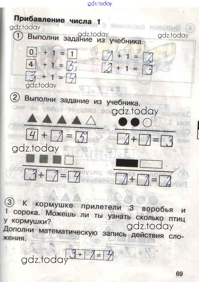 На страницах сайта gdz.today вы найдете учебный и вспомогательный материал, направленный на улучшения знаний школьной программы. ГДЗ - онлайн мир знаний Решение к тетради №1. Страницы 69 Тетради для самостоятельной работы по Математике для 1 класса Захарова, Юдина Академкнига Перспективная начальная школа 2016