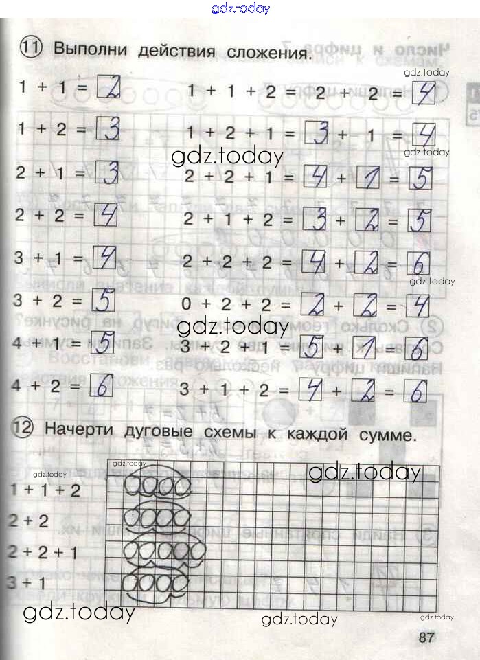На страницах сайта gdz.today вы найдете учебный и вспомогательный материал, направленный на улучшения знаний школьной программы. ГДЗ - онлайн мир знаний Решение к тетради №1. Страницы 87 Тетради для самостоятельной работы по Математике для 1 класса Захарова, Юдина Академкнига Перспективная начальная школа 2016