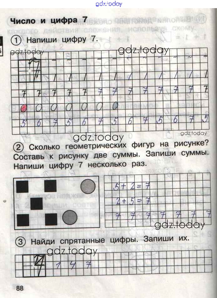 На страницах сайта gdz.today вы найдете учебный и вспомогательный материал, направленный на улучшения знаний школьной программы. ГДЗ - онлайн мир знаний Решение к тетради №1. Страницы 88 Тетради для самостоятельной работы по Математике для 1 класса Захарова, Юдина Академкнига Перспективная начальная школа 2016
