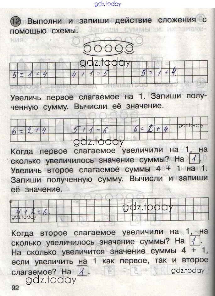 На страницах сайта gdz.today вы найдете учебный и вспомогательный материал, направленный на улучшения знаний школьной программы. ГДЗ - онлайн мир знаний Решение к тетради №1. Страницы 92 Тетради для самостоятельной работы по Математике для 1 класса Захарова, Юдина Академкнига Перспективная начальная школа 2016