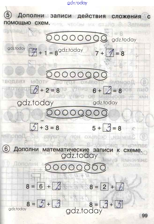 Ответы к Решение к тетради №1. Страницы 99 Тетради для самостоятельной работы по Математике для 1 класса Захарова, Юдина Академкнига Перспективная начальная школа 2016