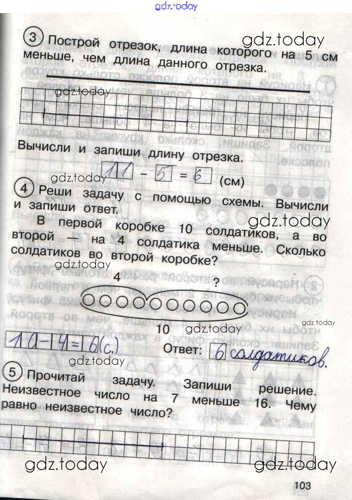 На страницах сайта gdz.today вы найдете учебный и вспомогательный материал, направленный на улучшения знаний школьной программы. ГДЗ - онлайн мир знаний Решение к тетради №2. Страницы 103 Тетради для самостоятельной работы по Математике для 1 класса Захарова, Юдина Академкнига Перспективная начальная школа 2016