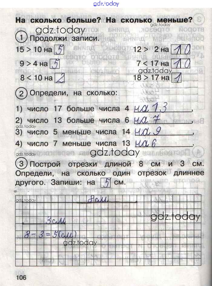 На страницах сайта gdz.today вы найдете учебный и вспомогательный материал, направленный на улучшения знаний школьной программы. ГДЗ - онлайн мир знаний Решение к тетради №2. Страницы 106 Тетради для самостоятельной работы по Математике для 1 класса Захарова, Юдина Академкнига Перспективная начальная школа 2016