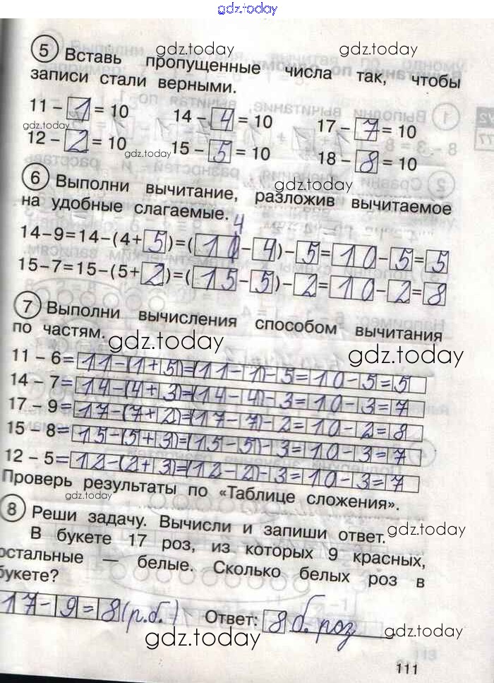 Ответы к Решение к тетради №2. Страницы 111 Тетради для самостоятельной работы по Математике для 1 класса Захарова, Юдина Академкнига Перспективная начальная школа 2016