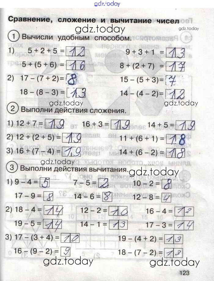 На страницах сайта gdz.today вы найдете учебный и вспомогательный материал, направленный на улучшения знаний школьной программы. ГДЗ - онлайн мир знаний Решение к тетради №2. Страницы 123 Тетради для самостоятельной работы по Математике для 1 класса Захарова, Юдина Академкнига Перспективная начальная школа 2016