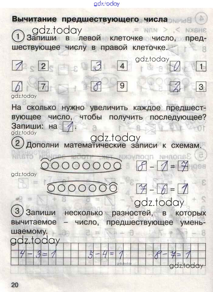 На страницах сайта gdz.today вы найдете учебный и вспомогательный материал, направленный на улучшения знаний школьной программы. ГДЗ - онлайн мир знаний Решение к тетради №2. Страницы 20 Тетради для самостоятельной работы по Математике для 1 класса Захарова, Юдина Академкнига Перспективная начальная школа 2016