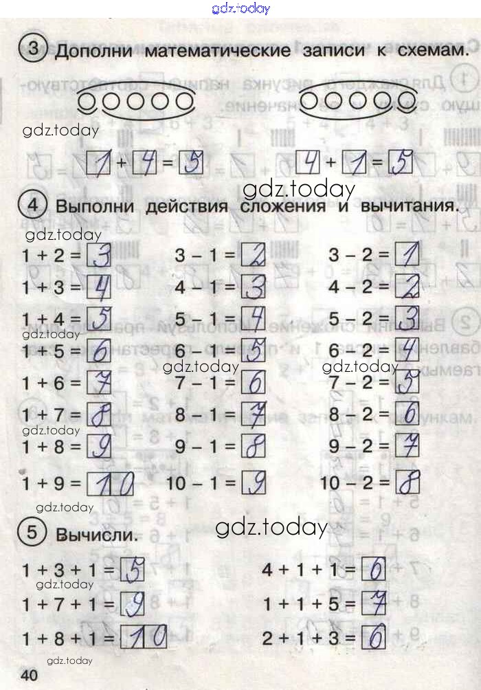 Ответы к Решение к тетради №2. Страницы 40 Тетради для самостоятельной работы по Математике для 1 класса Захарова, Юдина Академкнига Перспективная начальная школа 2016
