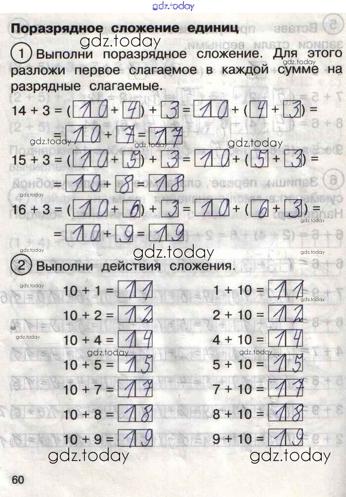 На страницах сайта gdz.today вы найдете учебный и вспомогательный материал, направленный на улучшения знаний школьной программы. ГДЗ - онлайн мир знаний Решение к тетради №2. Страницы 60 Тетради для самостоятельной работы по Математике для 1 класса Захарова, Юдина Академкнига Перспективная начальная школа 2016
