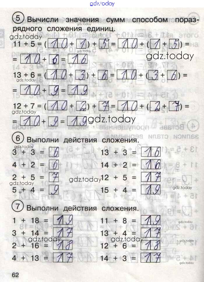 На страницах сайта gdz.today вы найдете учебный и вспомогательный материал, направленный на улучшения знаний школьной программы. ГДЗ - онлайн мир знаний Решение к тетради №2. Страницы 62 Тетради для самостоятельной работы по Математике для 1 класса Захарова, Юдина Академкнига Перспективная начальная школа 2016