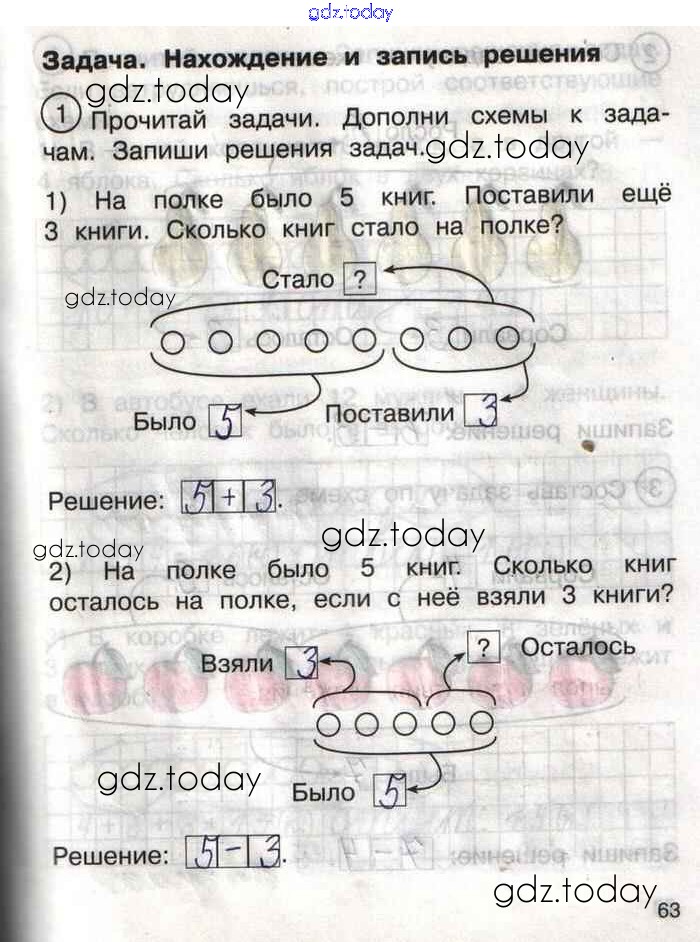 Ответы к Решение к тетради №2. Страницы 63 Тетради для самостоятельной работы по Математике для 1 класса Захарова, Юдина Академкнига Перспективная начальная школа 2016