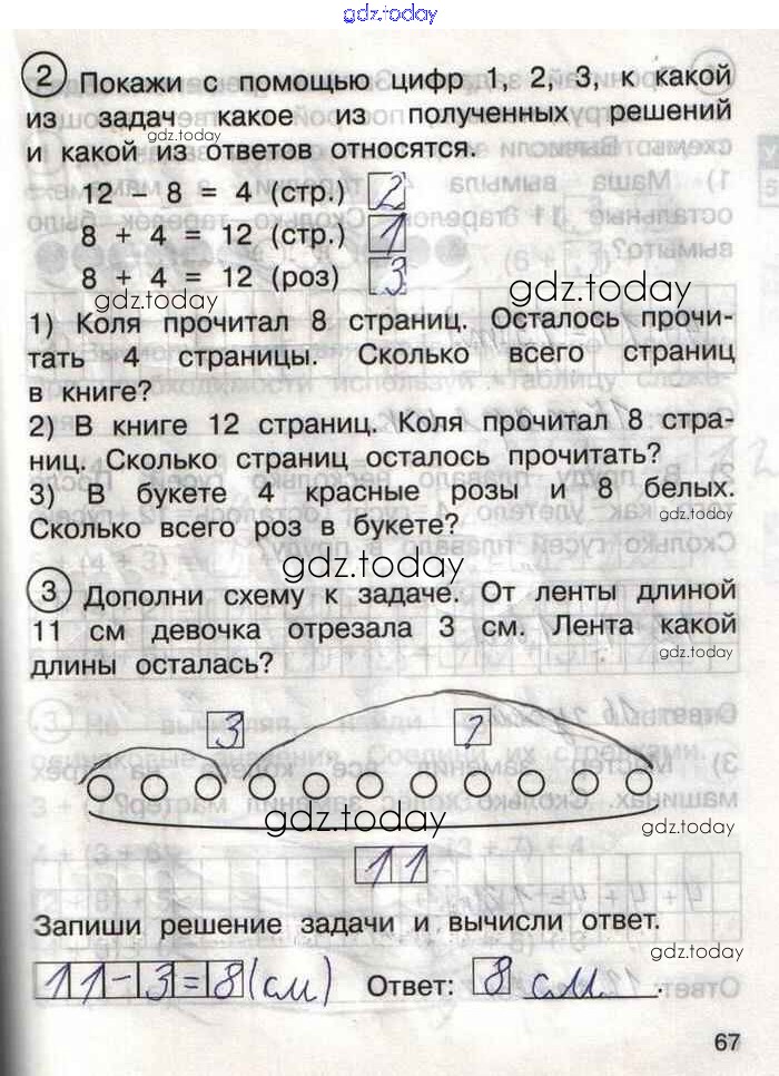 Ответы к Решение к тетради №2. Страницы 67 Тетради для самостоятельной работы по Математике для 1 класса Захарова, Юдина Академкнига Перспективная начальная школа 2016