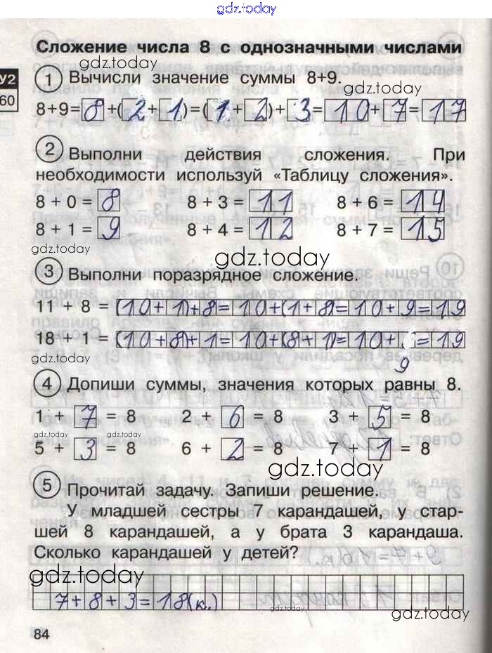 На страницах сайта gdz.today вы найдете учебный и вспомогательный материал, направленный на улучшения знаний школьной программы. ГДЗ - онлайн мир знаний Решение к тетради №2. Страницы 84 Тетради для самостоятельной работы по Математике для 1 класса Захарова, Юдина Академкнига Перспективная начальная школа 2016