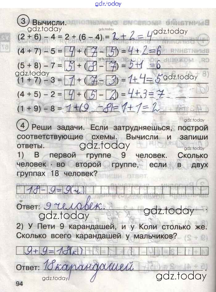 На страницах сайта gdz.today вы найдете учебный и вспомогательный материал, направленный на улучшения знаний школьной программы. ГДЗ - онлайн мир знаний Решение к тетради №2. Страницы 94 Тетради для самостоятельной работы по Математике для 1 класса Захарова, Юдина Академкнига Перспективная начальная школа 2016