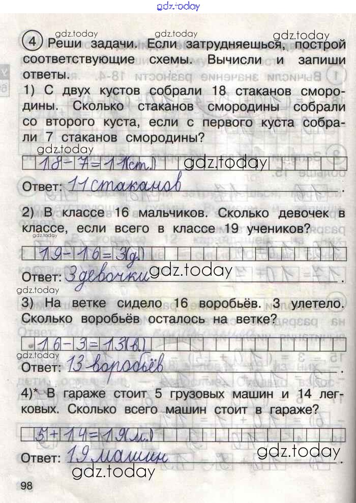 На страницах сайта gdz.today вы найдете учебный и вспомогательный материал, направленный на улучшения знаний школьной программы. ГДЗ - онлайн мир знаний Решение к тетради №2. Страницы 98 Тетради для самостоятельной работы по Математике для 1 класса Захарова, Юдина Академкнига Перспективная начальная школа 2016