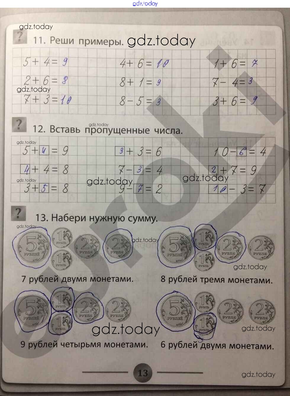 На страницах сайта gdz.today вы найдете учебный и вспомогательный материал, направленный на улучшения знаний школьной программы. ГДЗ - онлайн мир знаний Страницы (решение) 13 Тренажёру по Математике для 1 класса Губка Феникс 2017