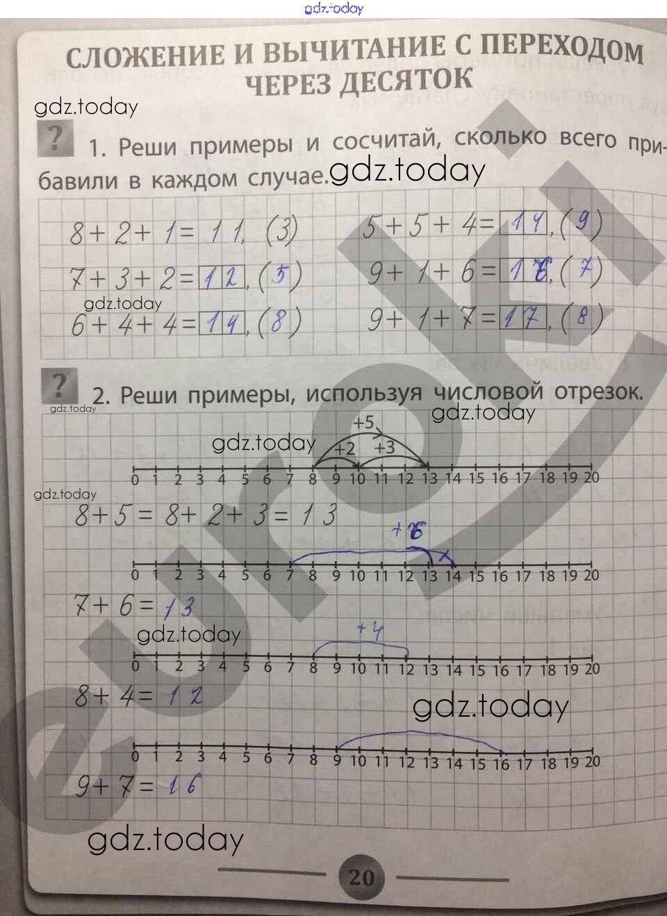 На страницах сайта gdz.today вы найдете учебный и вспомогательный материал, направленный на улучшения знаний школьной программы. ГДЗ - онлайн мир знаний Страницы (решение) 20 Тренажёру по Математике для 1 класса Губка Феникс 2017