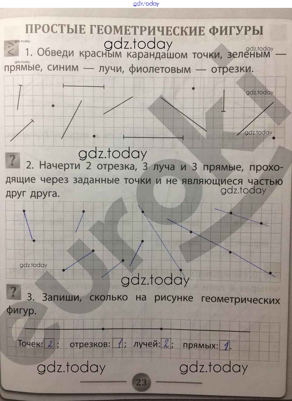 На страницах сайта gdz.today вы найдете учебный и вспомогательный материал, направленный на улучшения знаний школьной программы. ГДЗ - онлайн мир знаний Страницы (решение) 23 Тренажёру по Математике для 1 класса Губка Феникс 2017