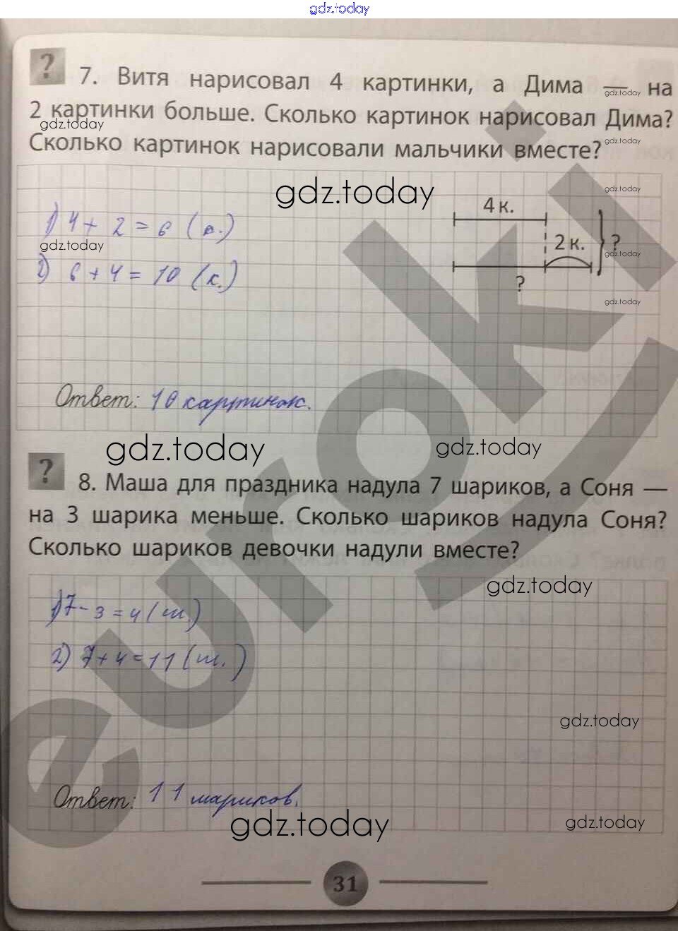 Ответы к Страницы (решение) 31 Тренажёру по Математике для 1 класса Губка Феникс 2017