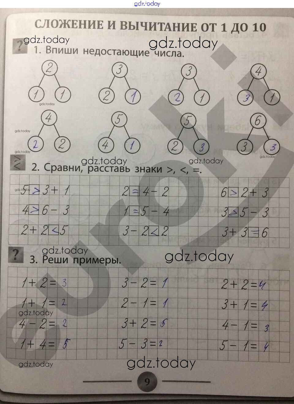 На страницах сайта gdz.today вы найдете учебный и вспомогательный материал, направленный на улучшения знаний школьной программы. ГДЗ - онлайн мир знаний Страницы (решение) 9 Тренажёру по Математике для 1 класса Губка Феникс 2017