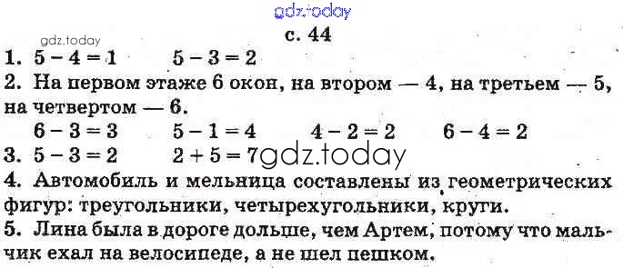 Ответы к Рішення до Нумерация чисел от 1 до 10 (Вправи) 44 Учебнику по Математике для 1 класса Богданович, Лишенко Генеза 2012