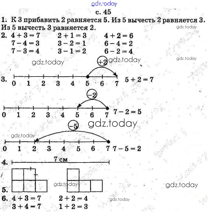 На страницах сайта gdz.today вы найдете учебный и вспомогательный материал, направленный на улучшения знаний школьной программы. ГДЗ - онлайн мир знаний Рішення до Нумерация чисел от 1 до 10 (Вправи) 45 Учебнику по Математике для 1 класса Богданович, Лишенко Генеза 2012