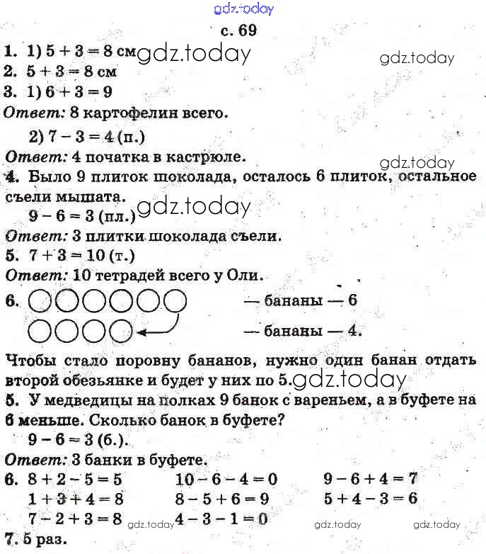 Ответы к Рішення до Сложение и вычитание в пределах 10 (Вправи) 69 Учебнику по Математике для 1 класса Богданович, Лишенко Генеза 2012