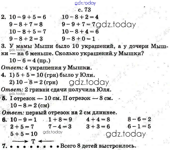 Ответы к Рішення до Сложение и вычитание в пределах 10 (Вправи) 73 Учебнику по Математике для 1 класса Богданович, Лишенко Генеза 2012