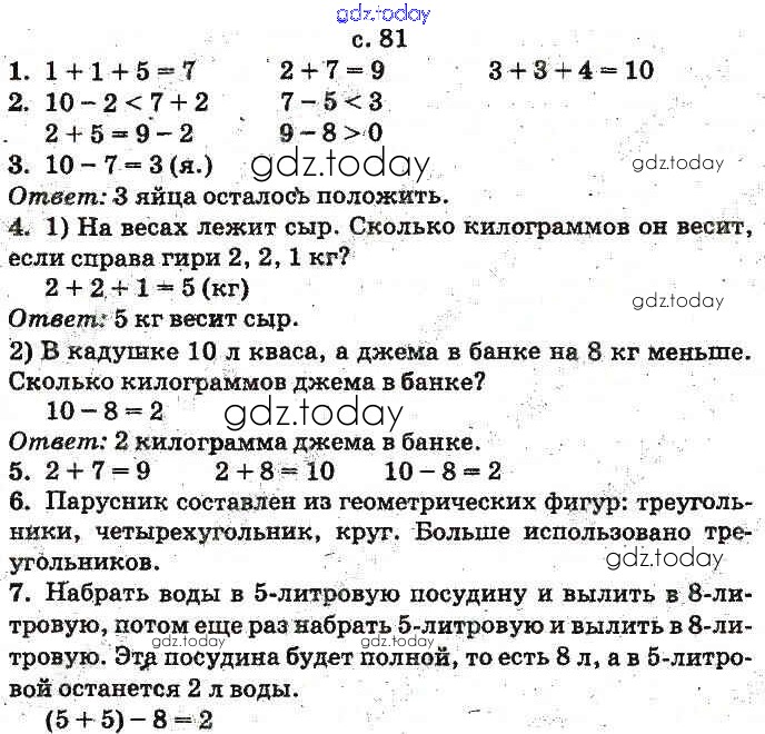 Ответы к Рішення до Сложение и вычитание в пределах 10 (Вправи) 81 Учебнику по Математике для 1 класса Богданович, Лишенко Генеза 2012