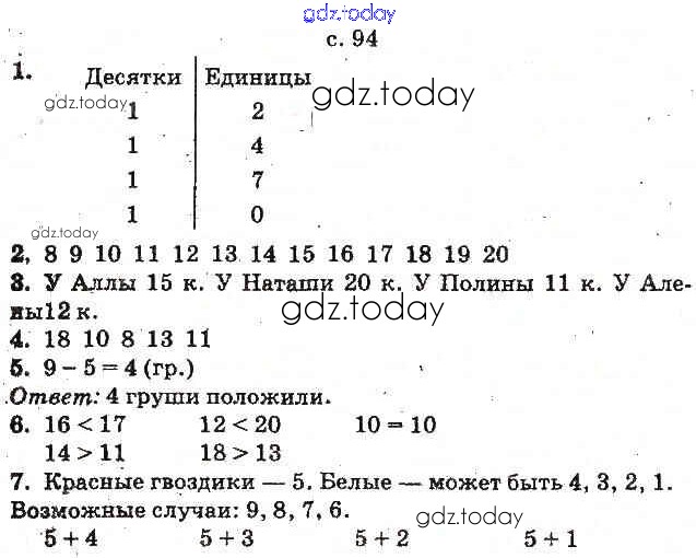 Ответы к Рішення до Числа 11-20 (Вправи) 94 Учебнику по Математике для 1 класса Богданович, Лишенко Генеза 2012