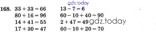 Ответы к Рішення до Сложение и вычитание двузначных чисел без перехода через разряд (Вправи) 168 Учебнику по Математике для 1 класса Богданович, Лишенко Генеза 2012