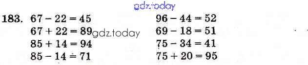 Ответы к Рішення до Сложение и вычитание двузначных чисел без перехода через разряд (Вправи) 183 Учебнику по Математике для 1 класса Богданович, Лишенко Генеза 2012