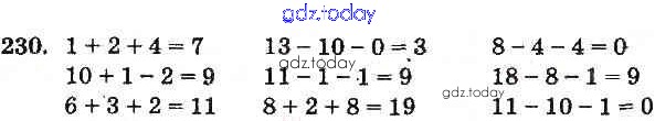 Ответы к Рішення до Повторение изученного (Вправи) 230 Учебнику по Математике для 1 класса Богданович, Лишенко Генеза 2012