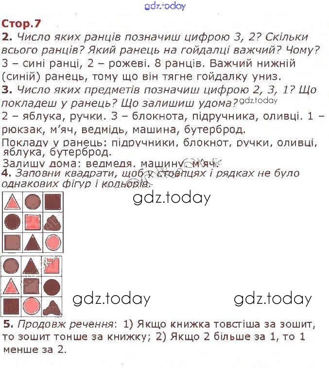Ответы к Рішення до Лічба (Сторінки) 7 Учебнику по Математике для 1 класса Лишенко, Тарнавська Генеза 2018