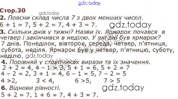 Ответы к Рішення до Нумерація чисел від 1 до 10 (Сторінки) 30 Учебнику по Математике для 1 класса Лишенко, Тарнавська Генеза 2018