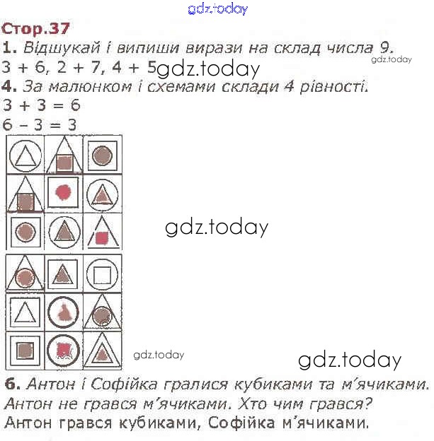 Ответы к Рішення до Нумерація чисел від 1 до 10 (Сторінки) 37 Учебнику по Математике для 1 класса Лишенко, Тарнавська Генеза 2018