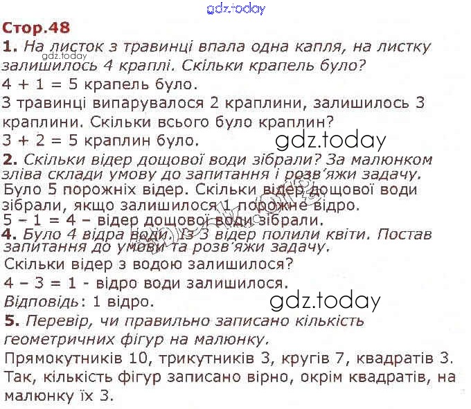 Ответы к Рішення до Нумерація чисел від 1 до 10 (Сторінки) 48 Учебнику по Математике для 1 класса Лишенко, Тарнавська Генеза 2018