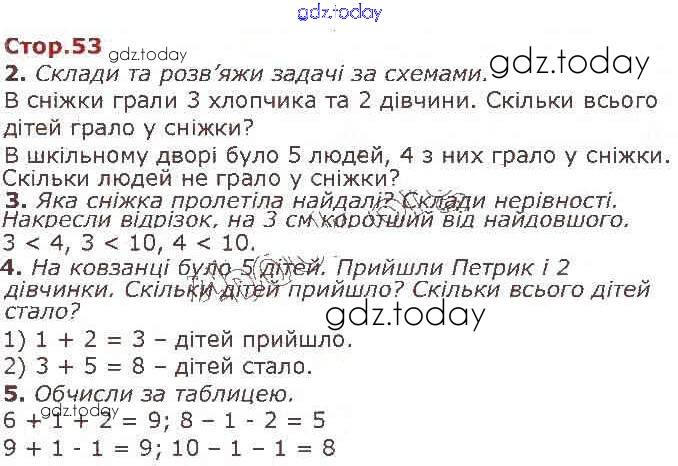 На страницах сайта gdz.today вы найдете учебный и вспомогательный материал, направленный на улучшения знаний школьной программы. ГДЗ - онлайн мир знаний Рішення до Додавання і віднімання в межах 10 (Сторінки) 53 Учебнику по Математике для 1 класса Лишенко, Тарнавська Генеза 2018