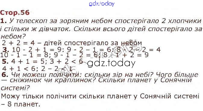 Ответы к Рішення до Додавання і віднімання в межах 10 (Сторінки) 56 Учебнику по Математике для 1 класса Лишенко, Тарнавська Генеза 2018