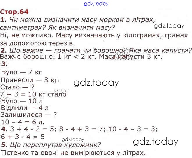 Ответы к Рішення до Додавання і віднімання в межах 10 (Сторінки) 64 Учебнику по Математике для 1 класса Лишенко, Тарнавська Генеза 2018