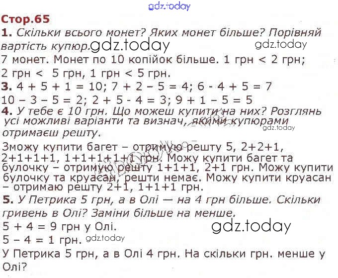 Ответы к Рішення до Додавання і віднімання в межах 10 (Сторінки) 65 Учебнику по Математике для 1 класса Лишенко, Тарнавська Генеза 2018