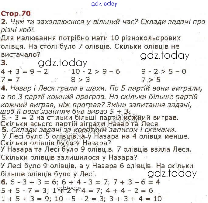 Ответы к Рішення до Додавання і віднімання в межах 10 (Сторінки) 70 Учебнику по Математике для 1 класса Лишенко, Тарнавська Генеза 2018