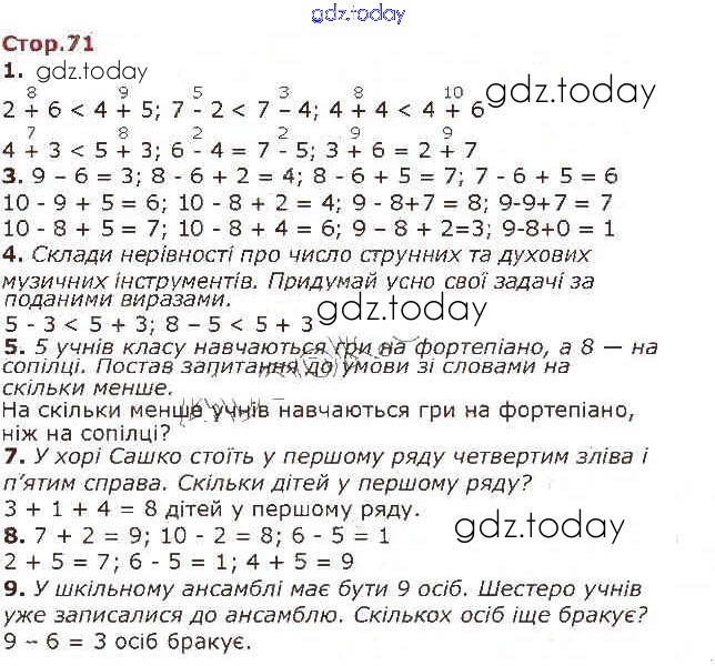 Ответы к Рішення до Додавання і віднімання в межах 10 (Сторінки) 71 Учебнику по Математике для 1 класса Лишенко, Тарнавська Генеза 2018
