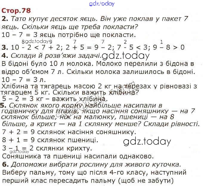 Ответы к Рішення до Додавання і віднімання в межах 10 (Сторінки) 78 Учебнику по Математике для 1 класса Лишенко, Тарнавська Генеза 2018